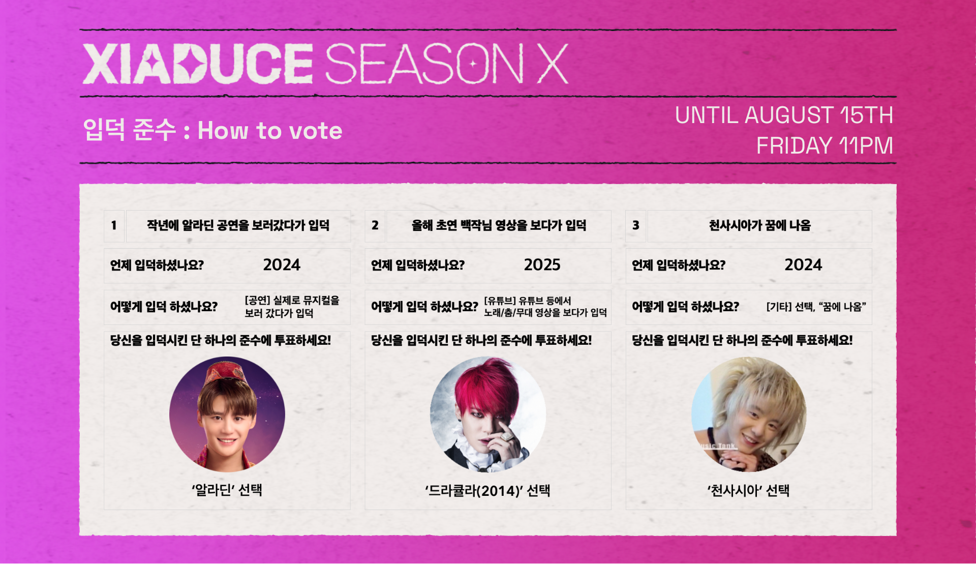 | XIADUCE SEASON X - 1차 투표 (1) | 2025.08.01 |